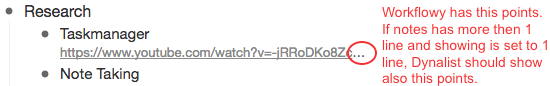 Workflowy shows 3 points at the end of 1st line if the note has more lines.